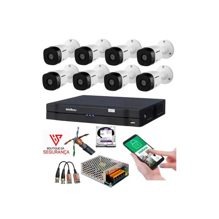 Kit DVR Intelbras + 8 Câmeras Intelbras VHL 1120 HD 720p 20m com HD MHDX 1108 SEM HD