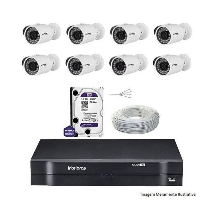 Kit Dvr Intelbras 8 Canais MHDX 8 Câmeras IPs Bullet VIP S3020B HD 1 TB WD Purple + Cabo
