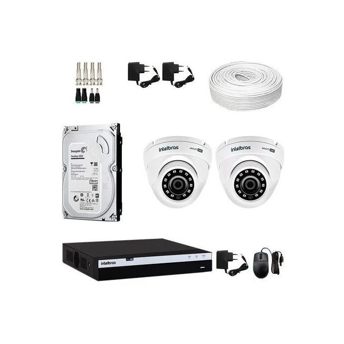 KIT DVR Intelbras Full HD + 2 Câmeras VHD 3220 D G4 + HD +Acessórios - 2 TB Seagate