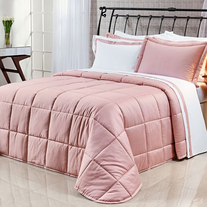 Kit Edredom 400 Fios Egípcio Dupla Face King Size Rosa 100% Algodão 3 Peças