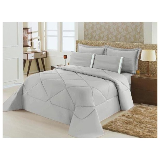 Kit Edredom Aconchego Casal Padrão 6 peças 150 fios Cinza