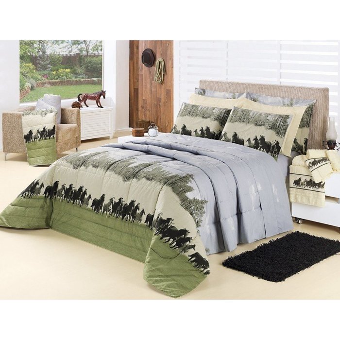 Kit Edredom Casal Padrão 5 Peças Desire 100% Algodão 200 Fios Texas