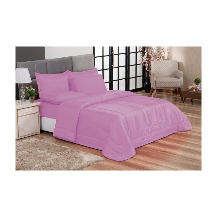 Kit Edredom Casal Queen + Jogo de Lençol 06 Peças Aconchego Dupla Face Casa Dona Pink