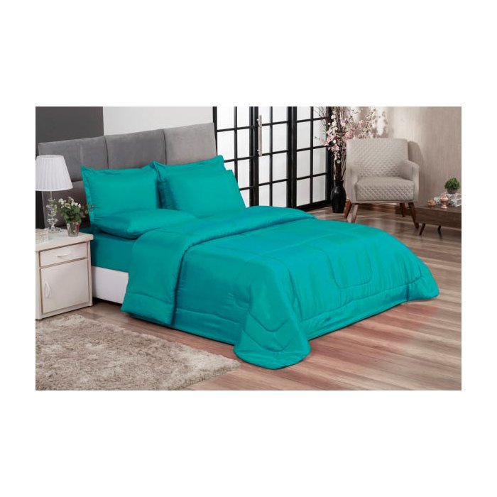 Kit Edredom Casal Queen + Jogo de Lençol 06 Peças Aconchego Dupla Face Casa Dona Tiffany