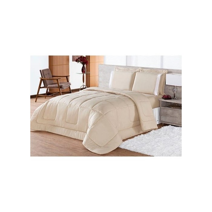Kit Edredom Casal Queen + Jogo de Lençol 06 Peças Aconchego Dupla Face Cotex Bege