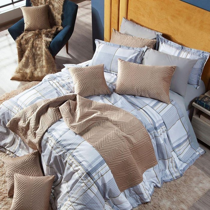 Kit Edredom Cinza Queen 03 Peças Dupla Face Percal