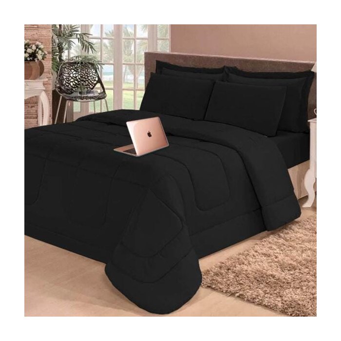 Kit Edredom Confort Casa Dona Dupla Face Casal Queen 6 Pçs com Lençol Areia