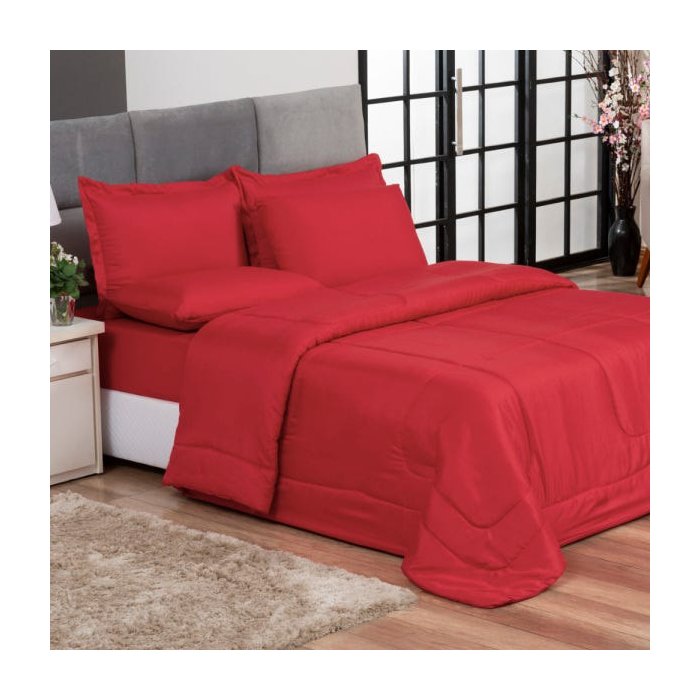 Kit Edredom Conforto Queen 6 Peças Vermelho Gabriela Casa Dona
