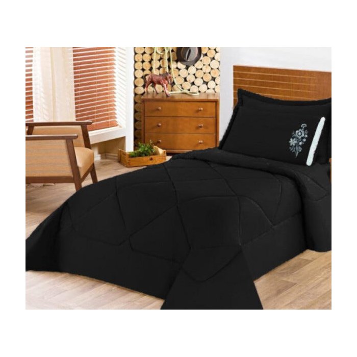 Kit Edredom Conforto Solteiro 4 peças 100% Poliéster Preto