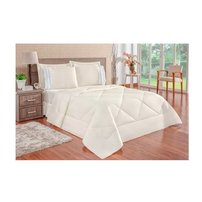 Kit Edredom Dupla Face C/ Jogo de Cama Cherry Casal 7pçs Palha