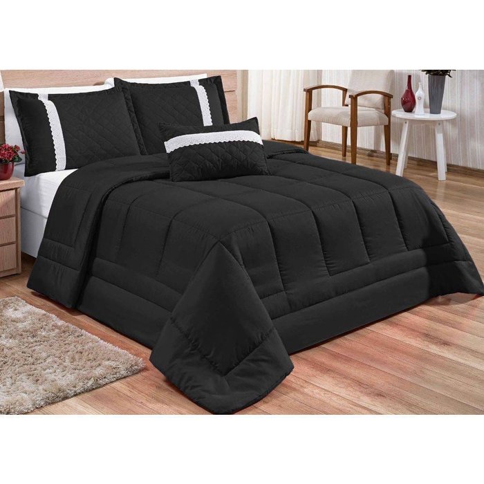 Kit Edredom Dupla Face Casal Queen Oliveira 6 Peças Preto Preto