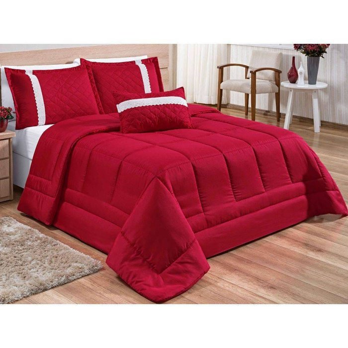 Kit Edredom Dupla Face Casal Queen Oliveira 6 Peças Vermelho