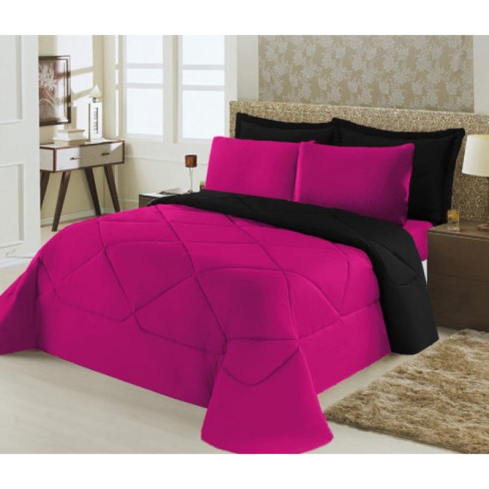 Kit Edredom Dupla Face Ternura Casal Queen 6 peças 150 fios - Pink e Preto