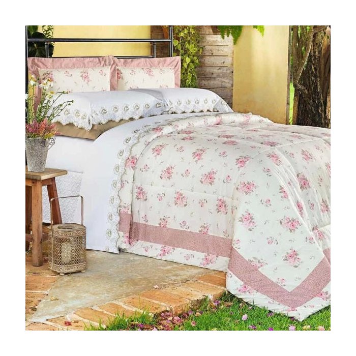 Kit Edredom + Jogo de Cama Super King Di Cotone 100% Alg. 150 Fios 07 Peças - Rose
