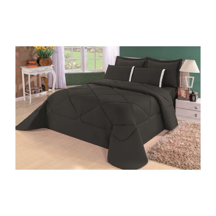 Kit Edredom + Lençol Aconchego Dupla Face Casal Queen 6 Pçs Preto Preto