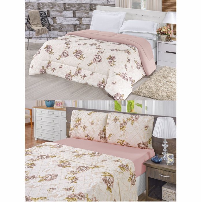 Kit Edredom Malha 100% Algodão King Dupla Face 7 Peças O Edredom é um produto que alia os conceitos de cobertor e edredom , trazendo o melhor de cada um deles em uma única peça, super versátil, No interior dos dois tecidos utilizamos a manta com gramatura 80 que fica com uma altura muito satisfatória. A composição de cores torna essa peça perfeita para deixar seu quarto muito mais bonito, elegante e sofisticado compatível com cama Ideal para tornar sua cama ainda mais aconchegante e aquecida em noites de frio mais intenso. MANTA ALTA 80 gr MATELADO - Contém na embalagem: 01 Edredom Queen Dupla Face 2,60m (Comprimento) x 2,40m (Largura) 02 Porta Travesseiros: 80cm x 55cm (Medida Util 70cm x 50cm) 01 Lençol de Cima: 2,50m x 2,40m 01 Lençol de Baixo: c/ Elástico: p/ colchão 2,03m x 1,93m x 40cm (altura) 02 Fronhas 70cm x 50cm COMPOSIÇÃO: Tecido: Malha 100% Algodão - Fio 30/1 Penteado 135gr Enchimento: 100% Poliéster Atenção: A foto apresentada no Anuncio pertence ao nosso Atelier, é a foto original do produto (Cuidado com as As cores podem variar de acordo com cada Monitor. Fique atento à descrição no anuncio.