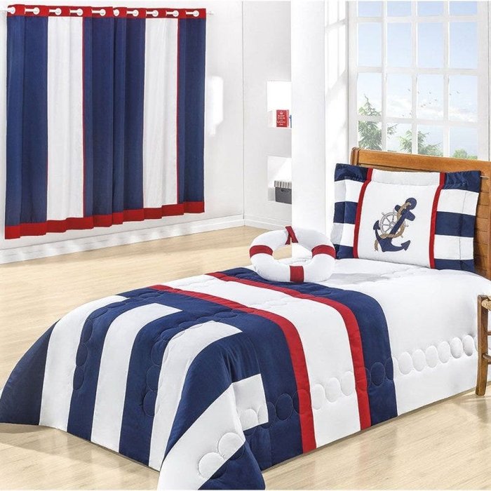 Kit Edredom Marinheiro Solteiro 03 Peças