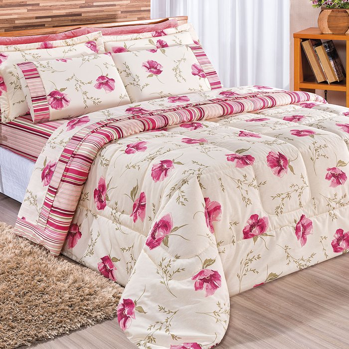 | Conteúdo da Embalagem | 01 Edredom 2,80m x 2,40m02 Porta Travesseiros 80cm x 55cm (medidia útil 70cm x 50cm) |