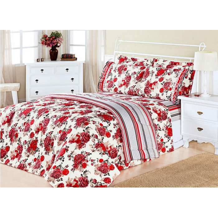 Kit Edwirgens Edredom Queen 9 Peças Vermelho