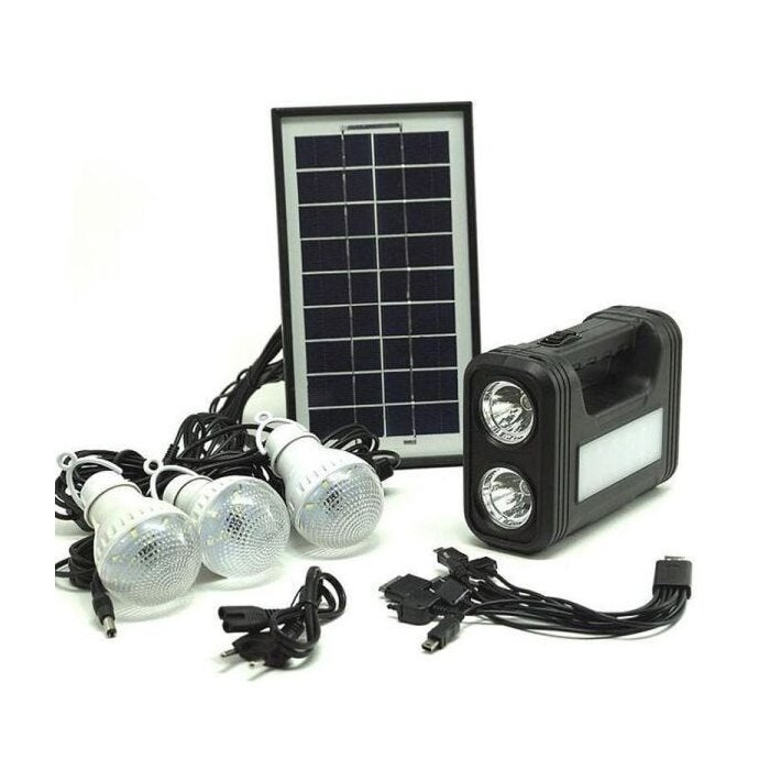A energia solar fornece corrente contínua para iluminação e carregamento de dispositivos móveis. Além de ser útil em momentos de necessidade, o sistema solar também é útil para eventos ao ar livre e viagens noturnas. Ele também vem com um painel solar, uma unidade de controle eletrônico, lâmpadas LED e uma Placa solar.