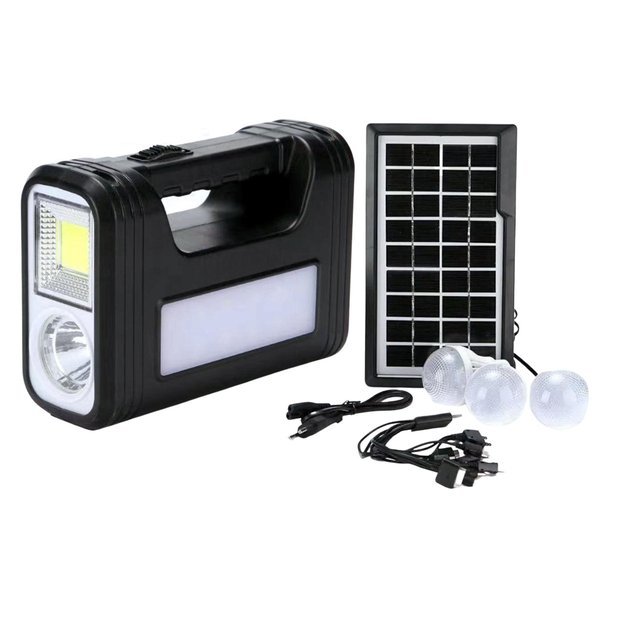 Este Kit De Energia Solar é ideal para você que busca um produto versátil que pode ser usado de várias formas e em qualquer lugar. Possui várias funções, por exemplo, pode ser utilizado como lanterna, luz de emergência e se precisar, como powerbank. Acompanha uma bateria de 4500mah que pode carregar seu celular.