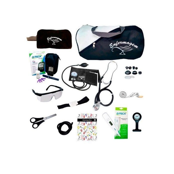 Kit Enfermagem Completo Com Kit Medidor De Glicose G-tech - Preto