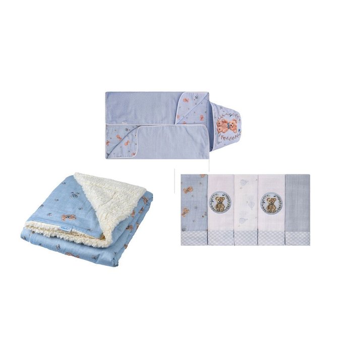 Kit Enxoval Bebe Luxo Toalha de Banho+manta+pano de Boca Cor:azul azul