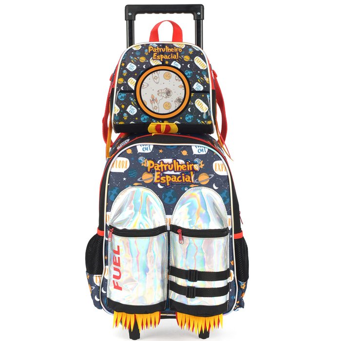 Kit Escolar Infantil para Meninos com Mochila de Rodinha e Lancheira - Patrulheiro Espacial - - Pret