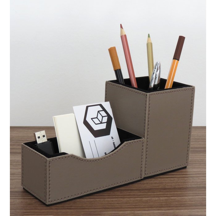 Kit Escritório em Corino Fendi Porta Lápis Canetas e Cartão