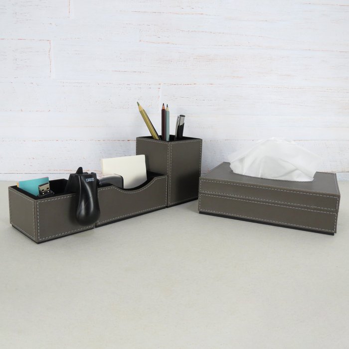Kit Escritório em Corino Grafite Organizadores Porta Lenço grafite