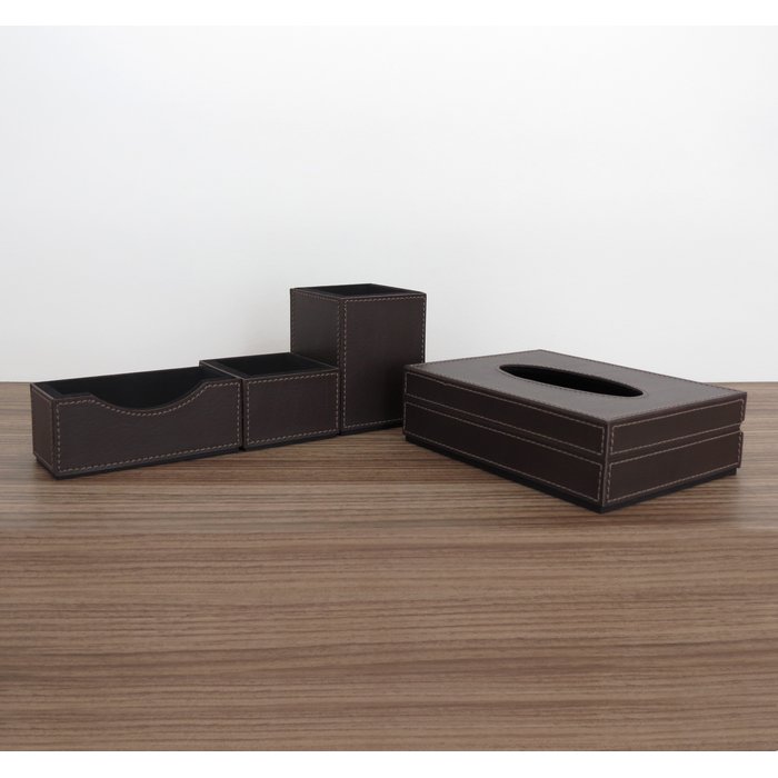 Kit Escritório em Corino Marrom Organizadores e Porta Lenço Corino Marrom