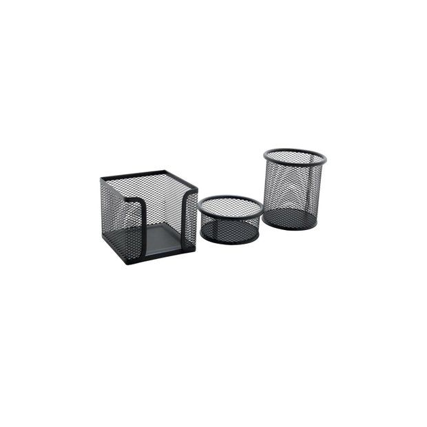 Kit Escritório Le Organizador de Mesa Aramado com 1 Porta Clips, 1 Porta Papel e 1 Porta Caneta preto