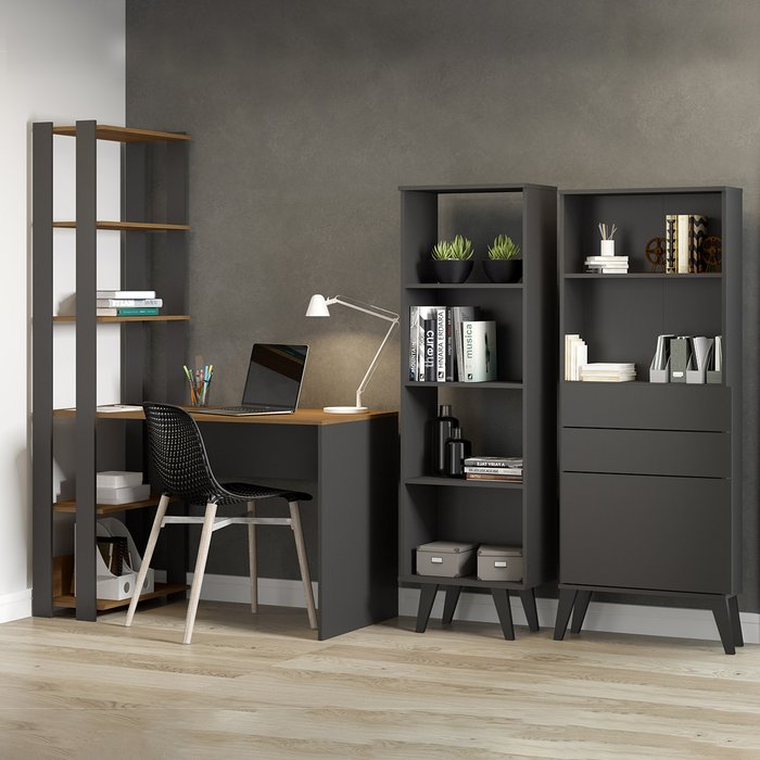 O Kit de Escritório Bacco é perfeito para complementar o seu ambiente. Possui um design inspirado no estilo industrial com cores sobreas, deixando o seu ambiente mais moderno e facilitando na hora de montar a composição da decoração. Possui mesa escrivaninha com estante de prateleiras, armário com três gavetas e armário de prateleiras, perfeito para manter tudo sempre organizado. O Kit de Escritório é produzido com materiais de excelente qualidade, garantindo a sua durabilidade e vida útil. O melhor em móveis no design atual aliando conforto, qualidade e ótimos preços, só na Menu Móveis!