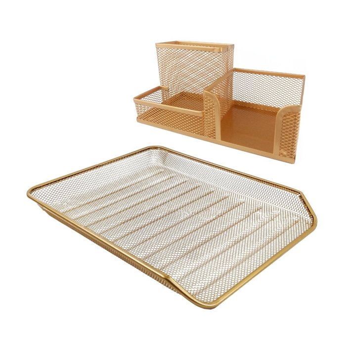 Kit Escritório Organizador de Mesa, Bandeja Dourado Ouro Dourado Ouro