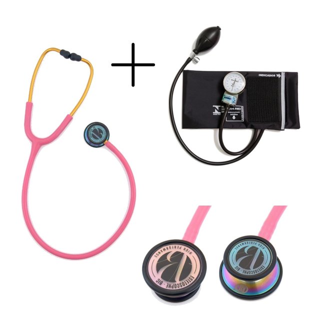 Kit Esfigmomanômetro Pamed + Estetoscópio Eternity Luxo BIC Cor:Rosa Chiclete Rainbow Rosa Chiclete Rainbow