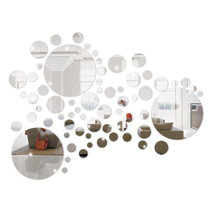 Kit Espelho Decorativo Acrílico Círculos Sala 66 Peças