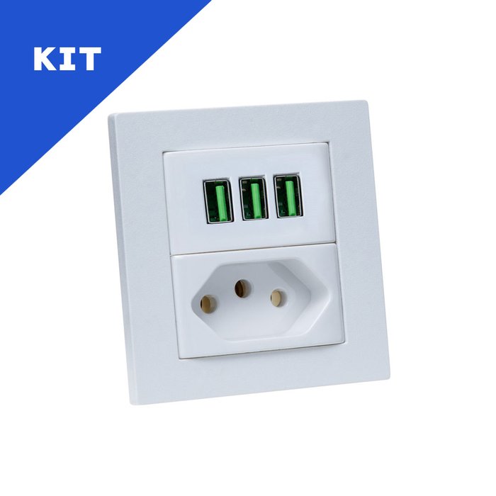Kit Espelho Duplo Reto com 1 Tomada 10a e 3 Usb 5.2a Branco