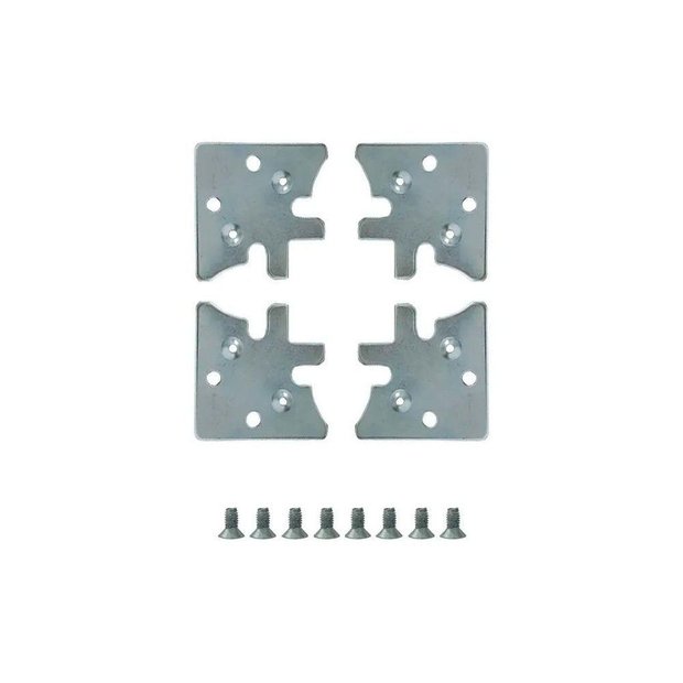 kit Esquadretas para perfil moveleiro - A esquadreta é uma chapa reta com furos usada na fixação e montagem de portas em perfil de alumínio, ela é instalada nos cantos das portas ou pontas dos perfis cortados em 90°. O Jogo de esquadreta é composto por 4 chapas, para os 4 cantos, mais seus parafusos para fixação, nossa esquadreta não vai com rosca, pois assim tem mais pressão e resistência quando o parafuso entra fazendo rosca na chapa. Esta esquadreta serve nos mais variados modelos de perfis disponíveis no mercado e em todos os perfis que vendemos em nossa loja.
