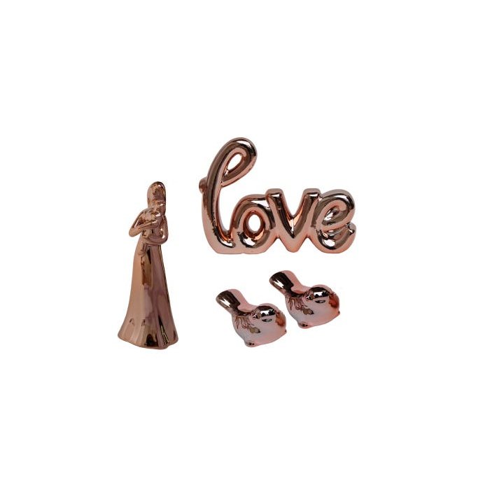 1 Estatua Palavra Decorativa Love em Cerâmica na cor Rose + 2 passarinhos Rose + 1 Estatua Decorativa Mãe e Filha em Porcelana Rose
