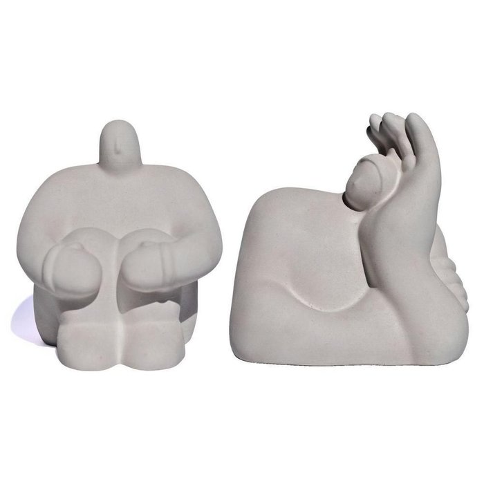 Kit Estátuas Decorativa Artesanais em Resina Mineral Gigantes Pensativo e Admirado 9,5x9,5cm Cinza Cinza