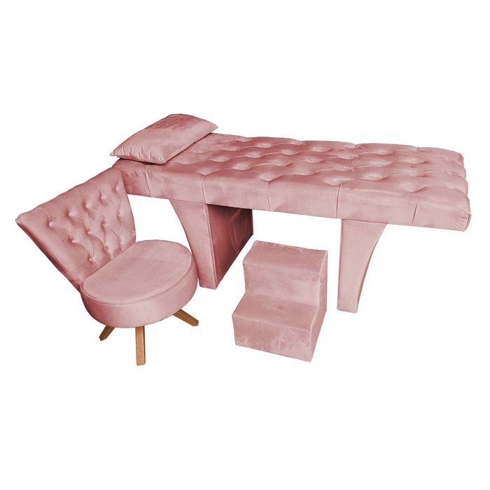Kit Estética Completo com Maca para Massagem de 80cm de Largura, Escada e Mocho Pé Fixo - V8 Decor:r Rosê