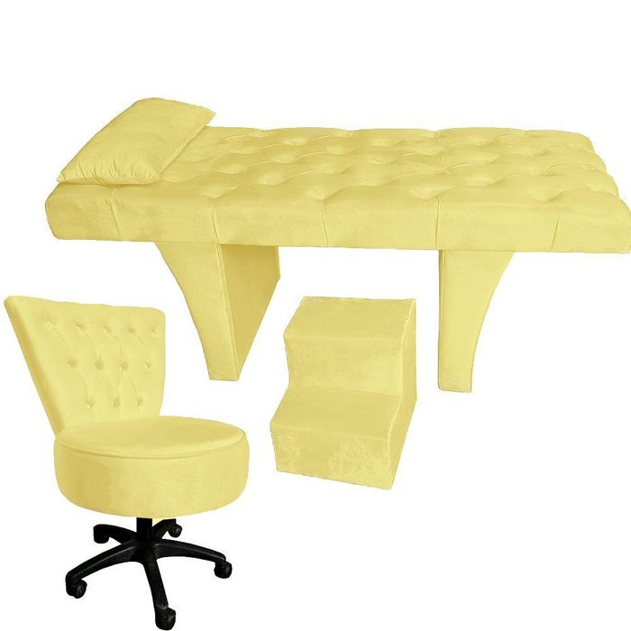 Kit Estética Completo Com Maca Para Massagem De 80cm De Largura, Escada E Mocho - V8 Decor Cor:amarelo