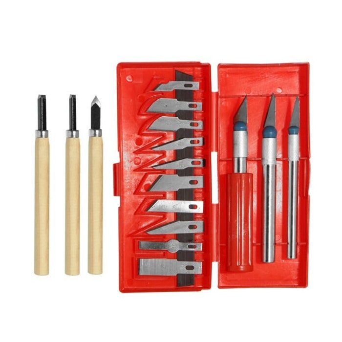 Contém: 10 Lâminas para estilete diversos formatos, 03 formões cabo madeira, 03 cabos com estilete, 01 caixa e 01 imã.Composição: Madeira, Aço e PVC.Marca: 123 Útil