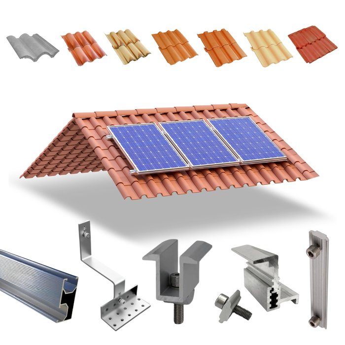 Estrutura Suporte Fixador Linha C Placa Painel Solar Alumínio e Inox Para Telha Cerâmica e Cimento