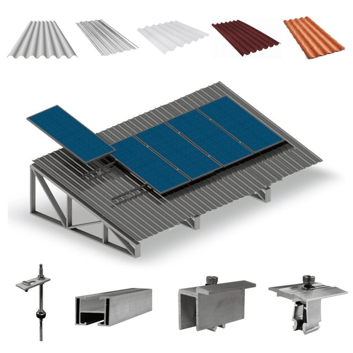 Kit Estrutura Suporte Fixador 6,60m para 5 Placas Solar Alumínio Inox Telha Fibro Ondulada Viga Metá
