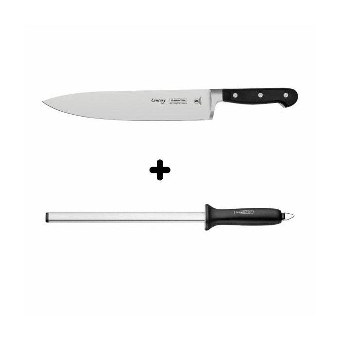 Kit Faca Chef Century e Chaira Profio em Aço Inox Tramontina