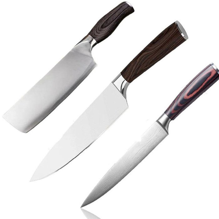Kit Faca Cutelo de Cozinha Padrão Aço Damasco Full Tang