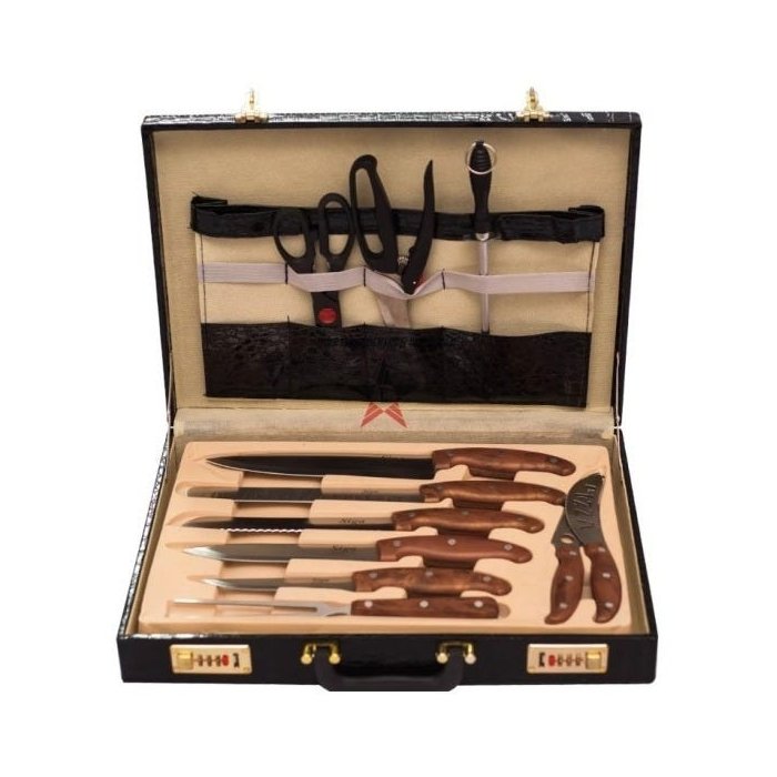 Kit Faqueiro Churrasco Ou Cozinha Com Maleta 25 Peças Em Aço Inox Marrom