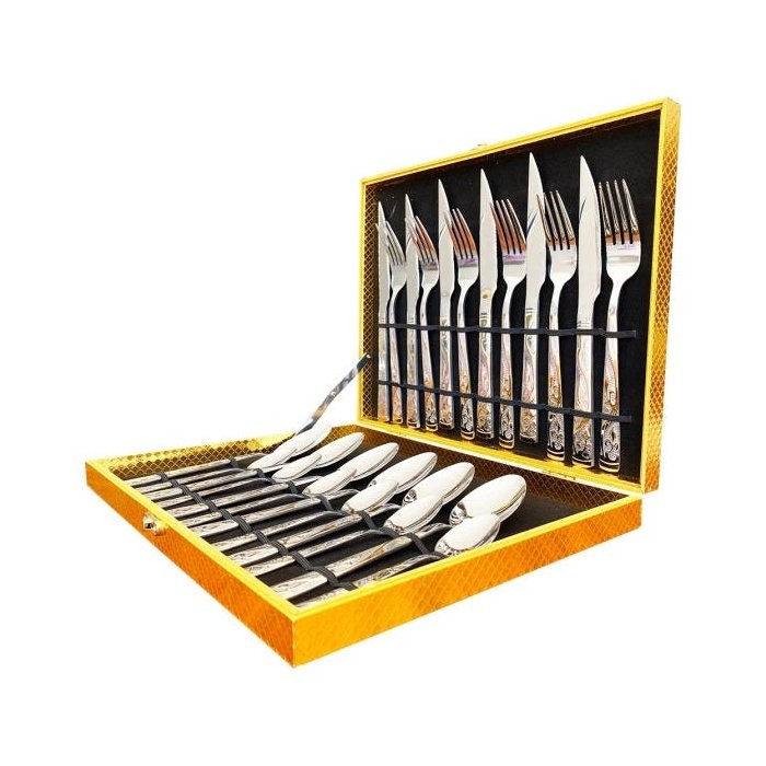 Kit Faqueiro Maleta De Talheres Inox 24 Peças Com Dourado