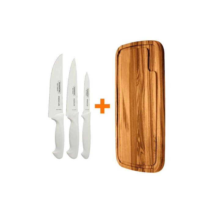 KIT - Faqueiro Premium 3 Peças + 1 Tábua para Churrasco 49x28 - Tramontina